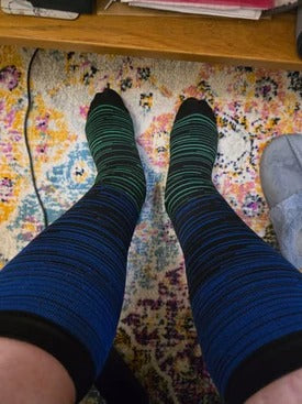 Our compression socks use a graduated compression of 20-30mmHg, offering the perfect balance of support and relief without feeling too tight.